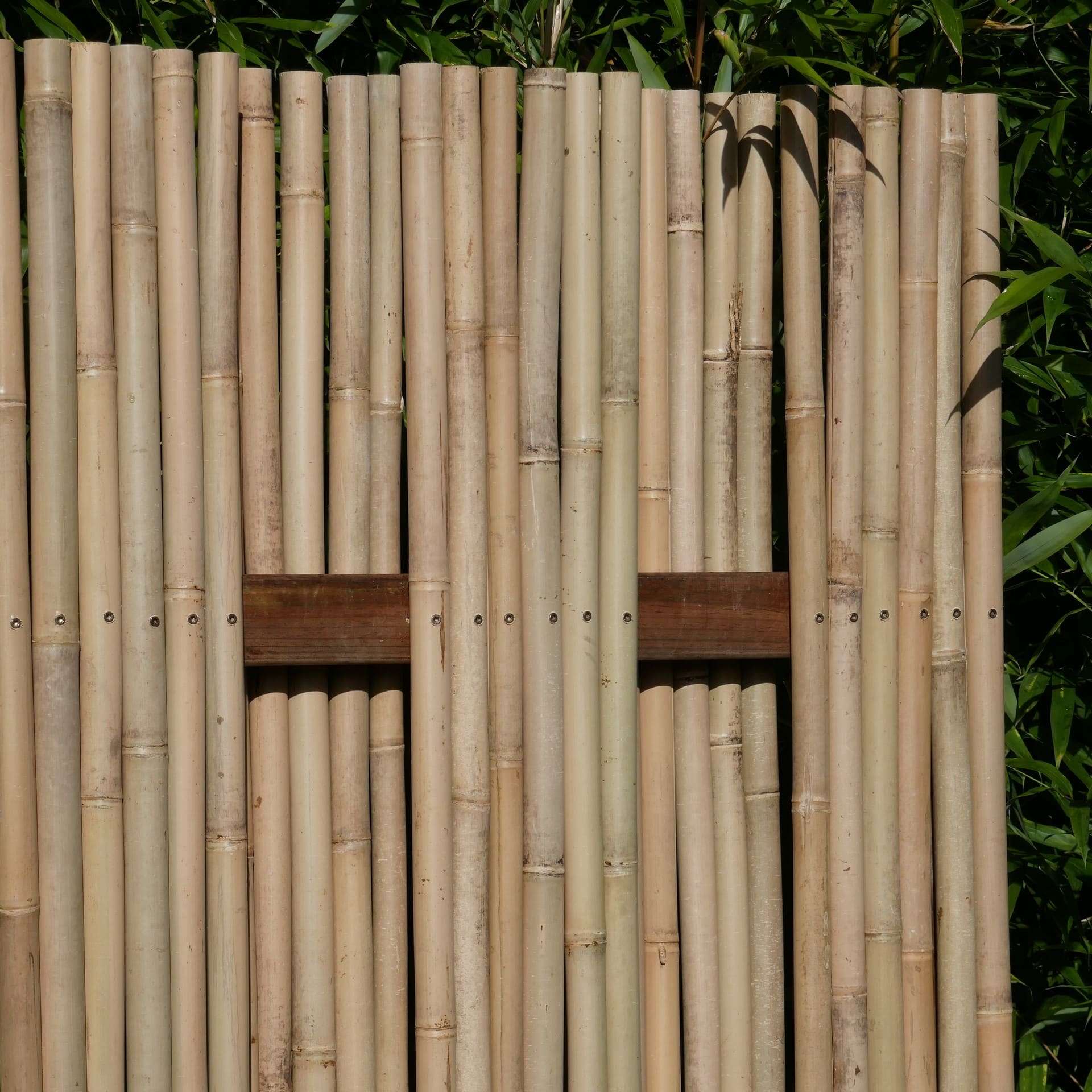 Sous l’action du soleil et des intempéries, le bambou évolue naturellement vers une teinte gris argenté, typique des aménagements extérieurs d’inspiration japonaise.